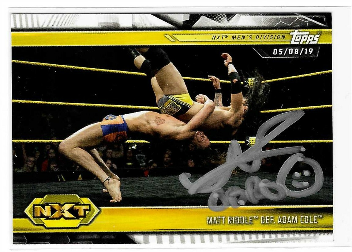 MATT RIDDLE SIGNED 2019 TOPPS WWE NXT ROOKIE CARD #92 ORIGNAL BRO BROSERWEIGHTS COLLECTIBLE MEMORABILIA