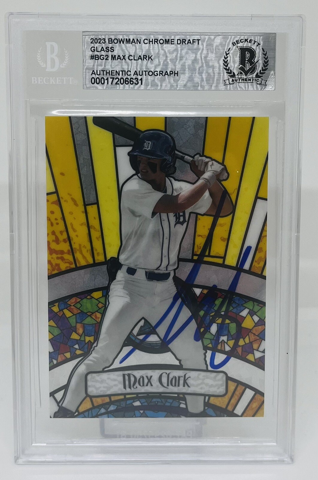 MAX CLARK SIGNED 2023 BOWMAN CHROME DRAFT GLASS ROOKIE CARD BECKETT BAS AUTO COLLECTIBLE MEMORABILIA