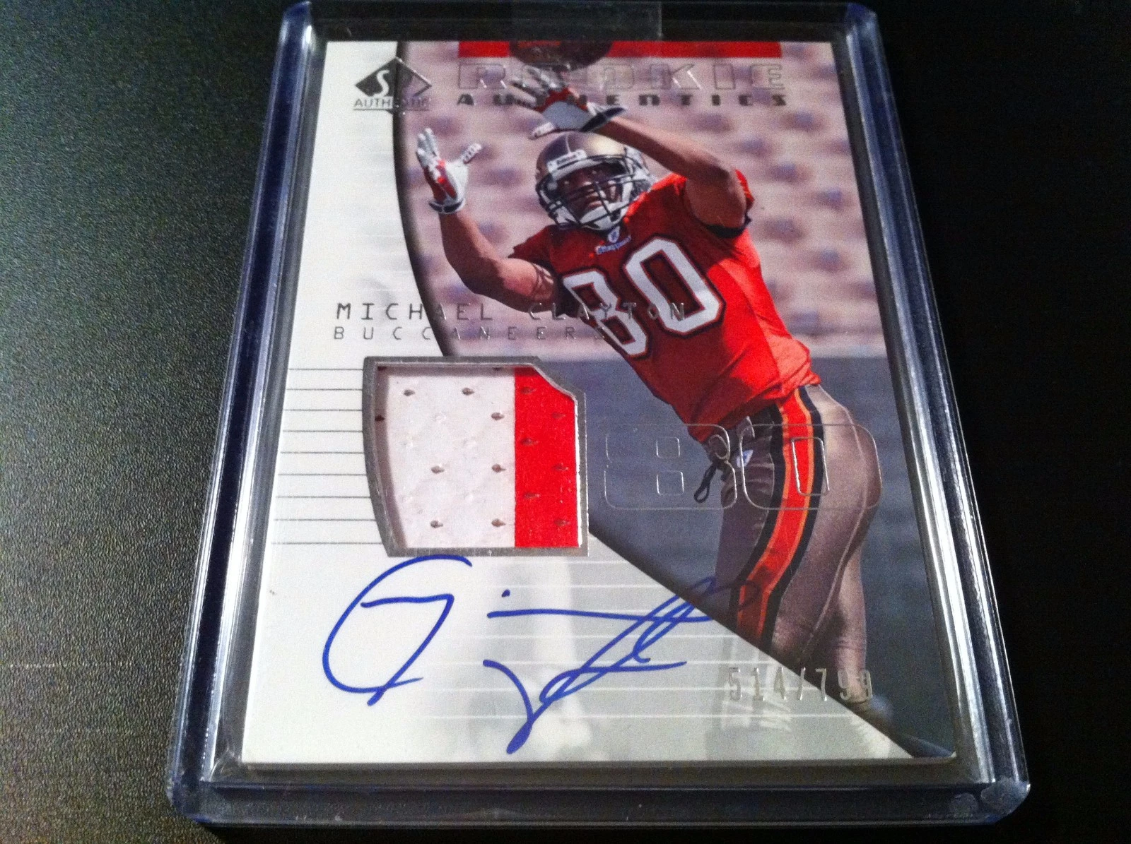 MICHAEL CLAYTON 2004 SP AUTHENTIC ROOKIE 2-CLR PATCH JERSEY AUTO /799 COLLECTIBLE MEMORABILIA