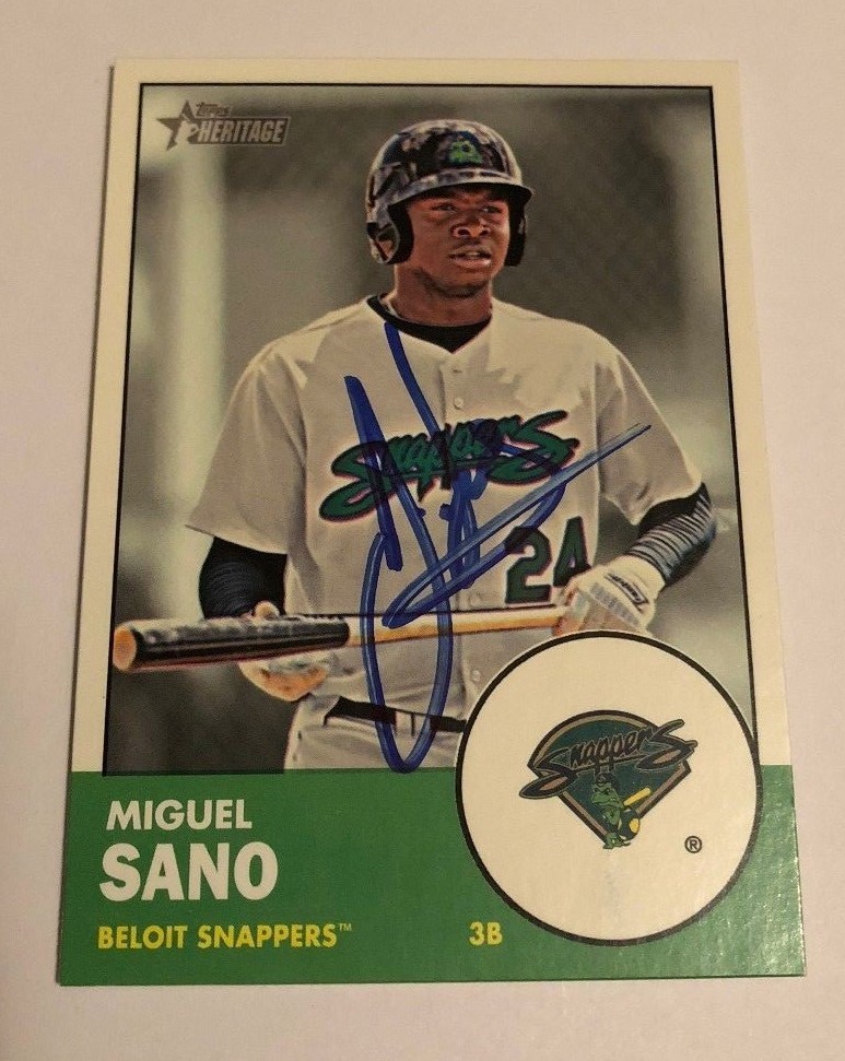 MIGUEL SANO SIGNED 2012 TOPPS HERITAGE MINORS PROSPECT ROOKIE CARD AUTO COLLECTIBLE MEMORABILIA