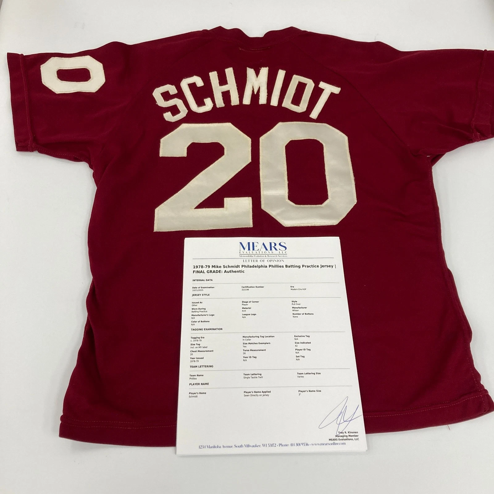 MIKE SCHMIDT 1978 GAME USED PHILADELPHIA PHILLIES JERSEY MEARS COA COLLECTIBLE MEMORABILIA