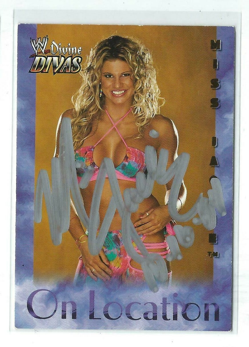 MISS JACKIE SIGNED 2003 FLEER WWE DIVINE DIVAS ON LOCATION CARD #14 COLLECTIBLE MEMORABILIA