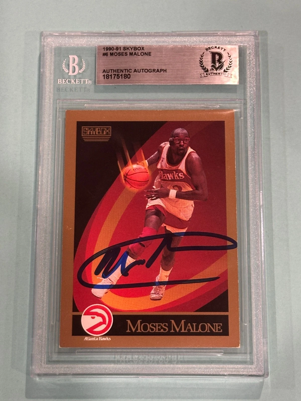 MOSES MALONE SIGNED 1990-91 SKYBOX CARD #6 BECKETT (BAS) COLLECTIBLE MEMORABILIA