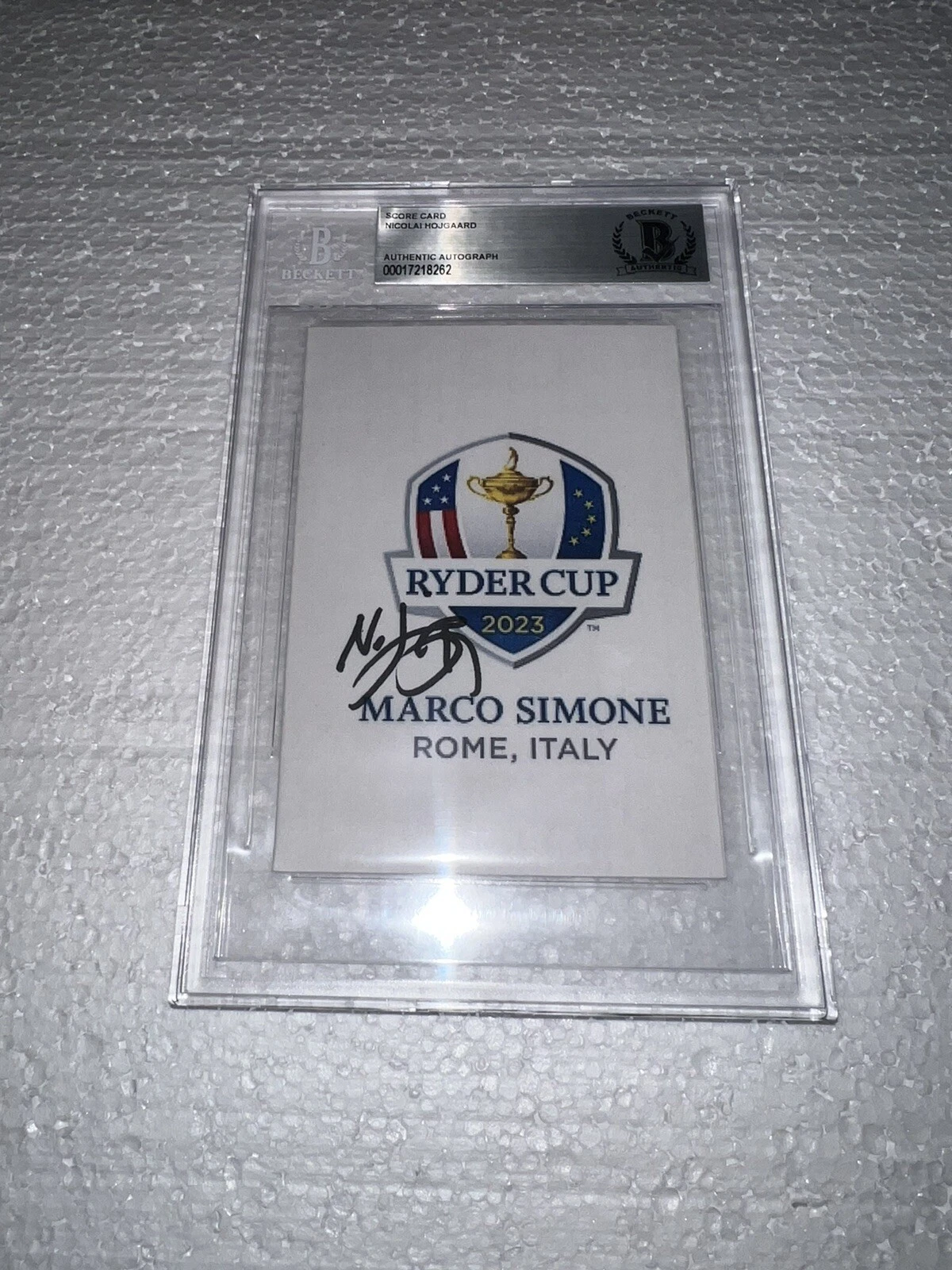 NICOLAI HOJGAARD SIGNED 2023 RYDER CUP SCORECARD CHAMPION MARCO SIMONE BECKETT COLLECTIBLE MEMORABILIA