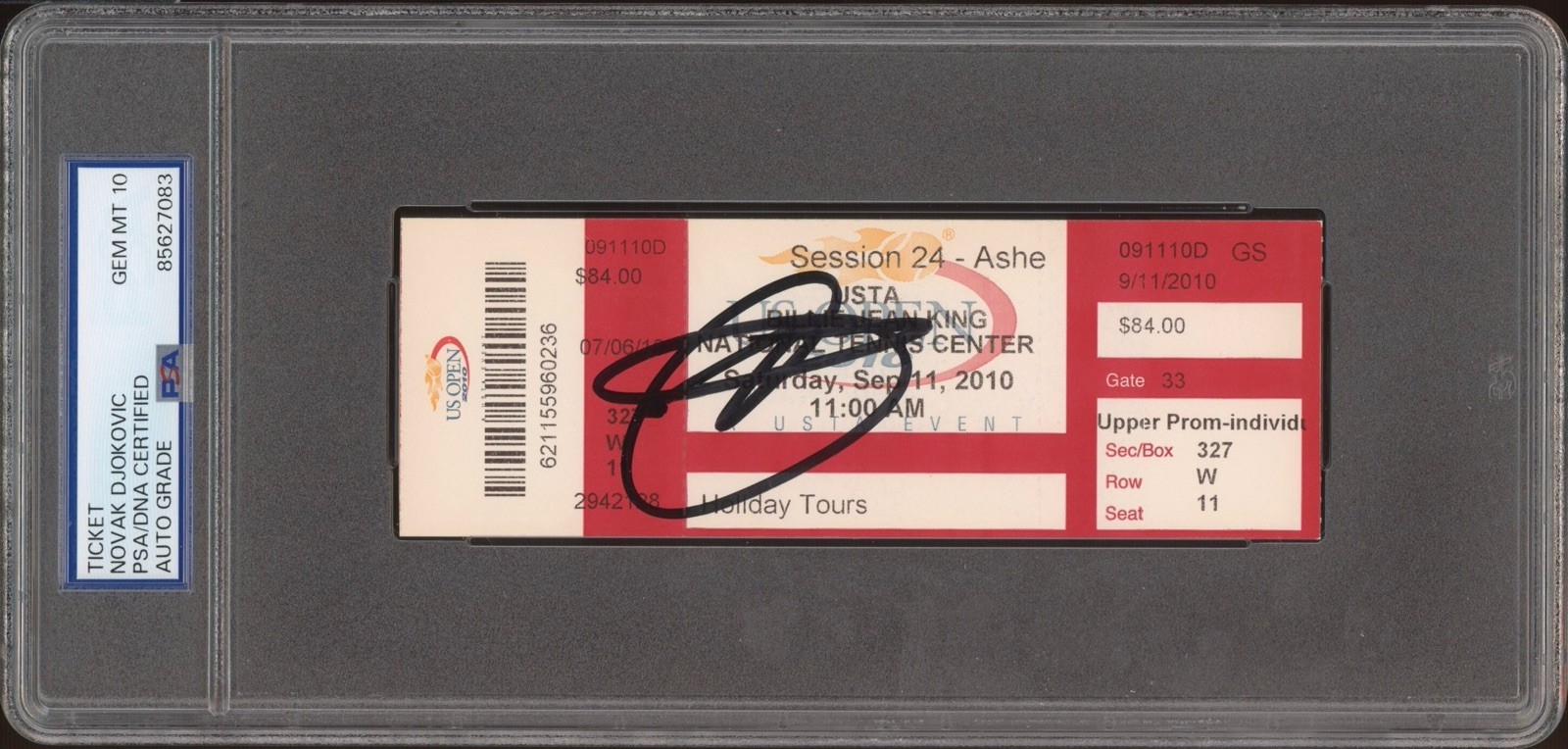 NOVAK DJOKOVIC SIGNED 2010 US OPEN SEMIFINAL TICKET STUB PSA GEM MT 10 AUTO COLLECTIBLE MEMORABILIA