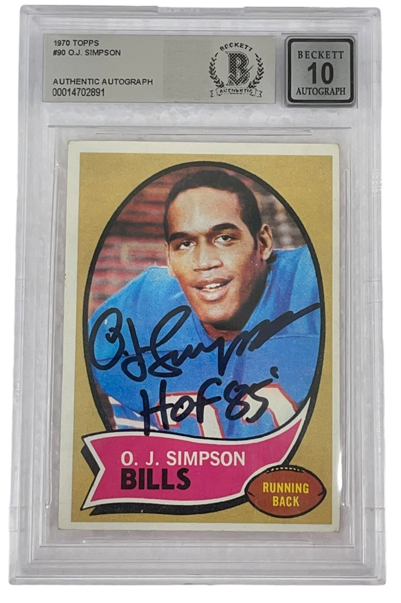 OJ SIMPSON SIGNED 1970 TOPPS #70 ROOKIE CARD AUTOGARPHED INSCRIPT 10 GRADE BAS 2 COLLECTIBLE MEMORABILIA
