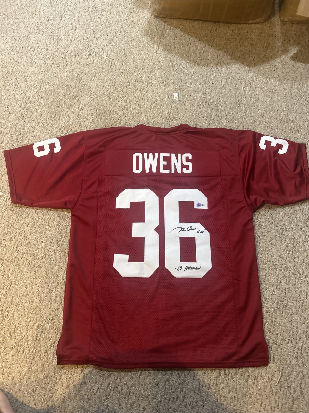 OKLAHOMA SOONERS- STEVE OWENS SIGNED AUTOGRAPH JERSEY BECKETT COA 69 HEISMAN COLLECTIBLE MEMORABILIA