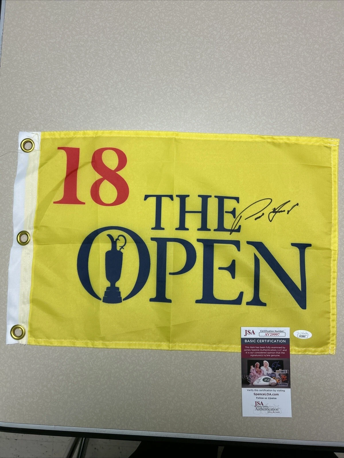 PADRAIG HARRINGTON SIGNED AUTOGRAPH BRITISH OPEN PIN FLAG JSA COA GOLF PGA CHAMP COLLECTIBLE MEMORABILIA