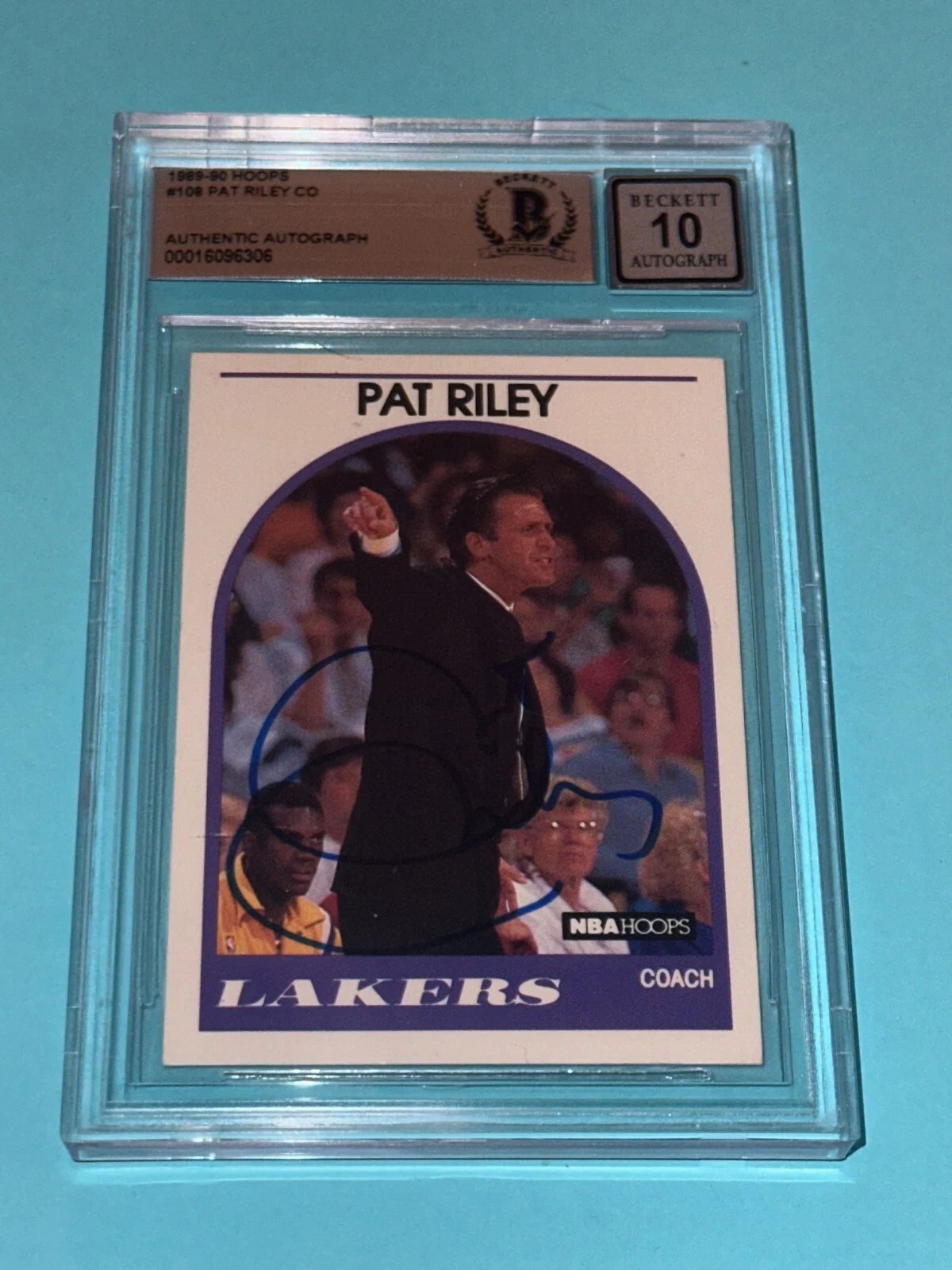 PAT RILEY SIGNED 1989-90 HOOPS CARD #108 BECKETT AUTHENTICATED BAS AUTO GRADE 10 COLLECTIBLE MEMORABILIA