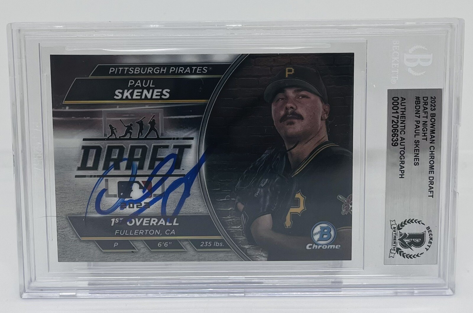 PAUL SKENES SIGNED 2023 BOWMAN CHROME DRAFT NIGHT BASEBALL CARD BECKETT BAS AUTO COLLECTIBLE MEMORABILIA