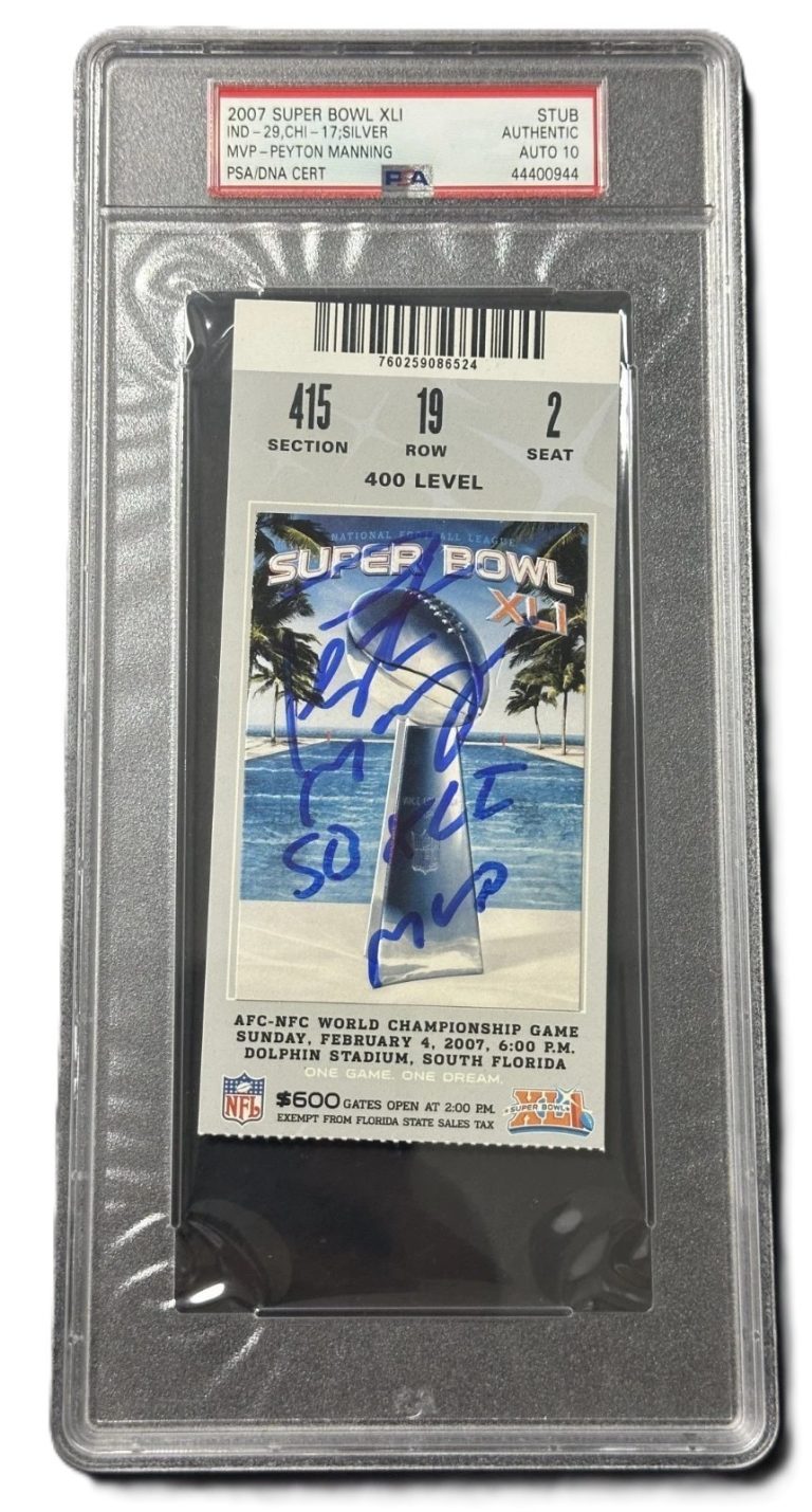 PEYTON MANNING SIGNED 2007 SUPER BOWL XLI TICKET MVP PSA PSA/DNA 10 COLLECTIBLE MEMORABILIA
