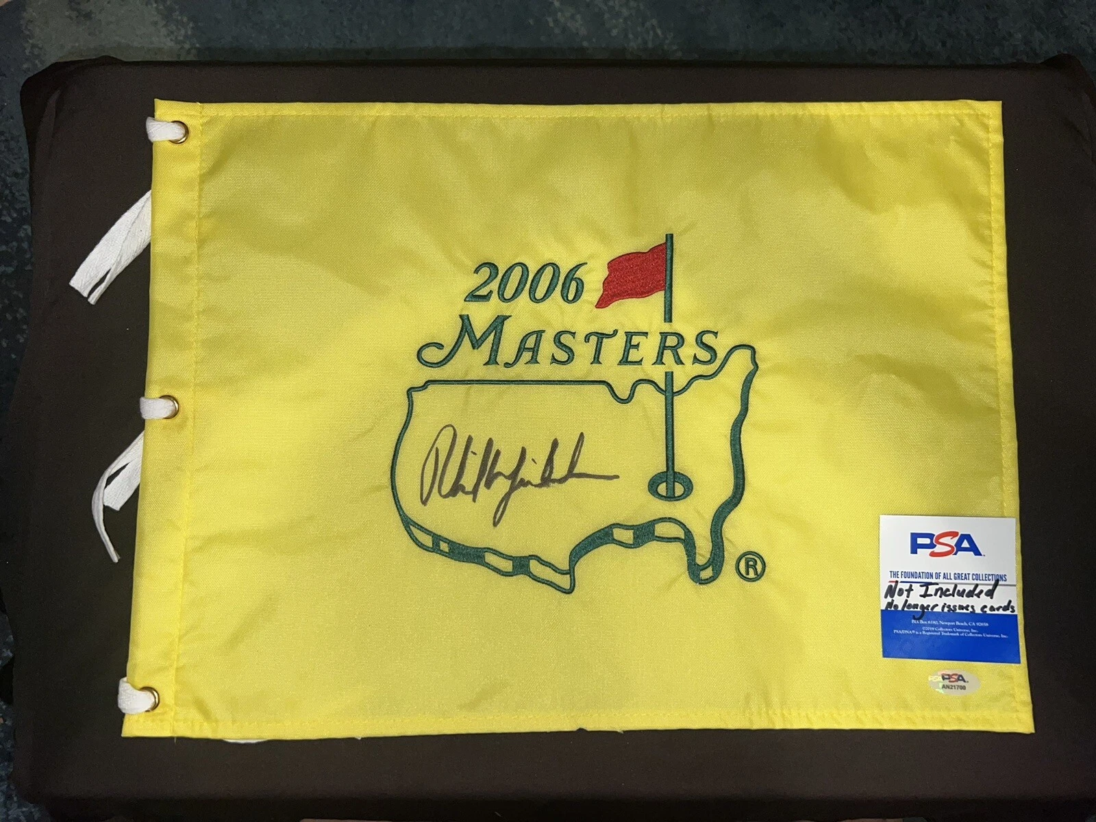 PHIL MICKELSON OFFICIAL 2006 MASTERS FLAG AUGUSTA 3X CHAMPION LEGEND PSA/DNA COLLECTIBLE MEMORABILIA