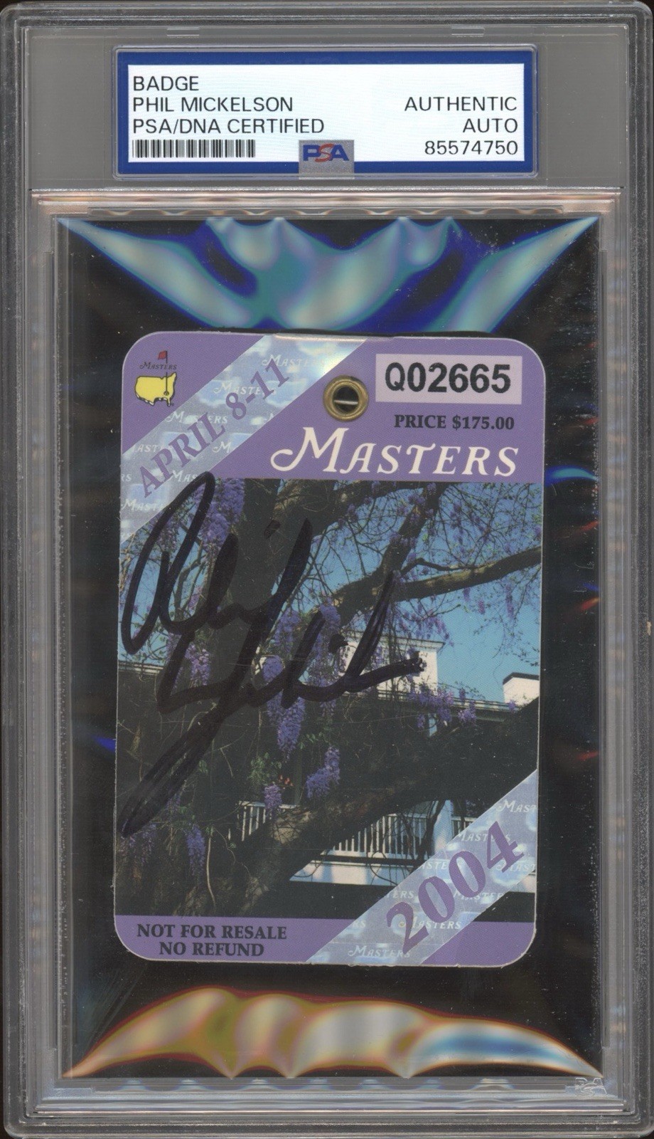 PHIL MICKELSON SIGNED 2004 MASTERS CHAMPION BADGE TICKET 1ST MAJOR WIN PSA AUTO COLLECTIBLE MEMORABILIA