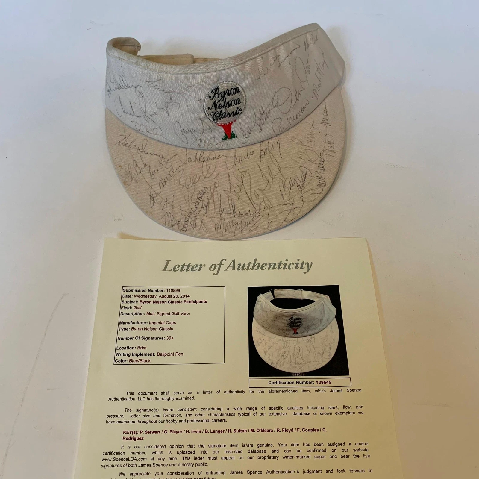 RARE PAYNE STEWART PGA GOLF GREATS MULTI SIGNED HAT VISOR 30+ SIGS WITH JSA COA COLLECTIBLE MEMORABILIA