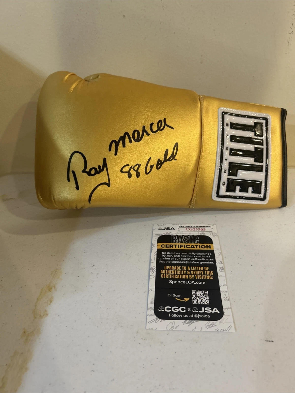RAY MERCER SIGNED AUTOGRAPH BOXING GLOVE JSA COA OLYMPIC BOXER CHAMP 88 GOLD COLLECTIBLE MEMORABILIA
