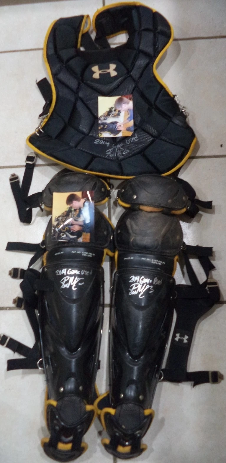 REESE MCGUIRE PIRATES SIGNED GAME USED CHEST PROTECTOR & SHIN GUARDS COA PROOF COLLECTIBLE MEMORABILIA