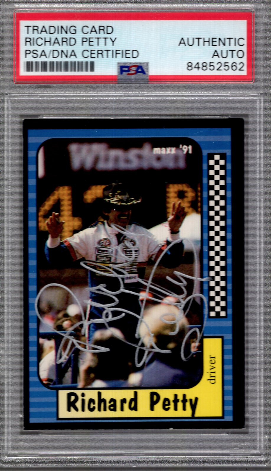 RICHARD PETTY HAND SIGNED 1991 MAXX TRADING CARD NASCAR HOF PSA SLABBED COLLECTIBLE MEMORABILIA