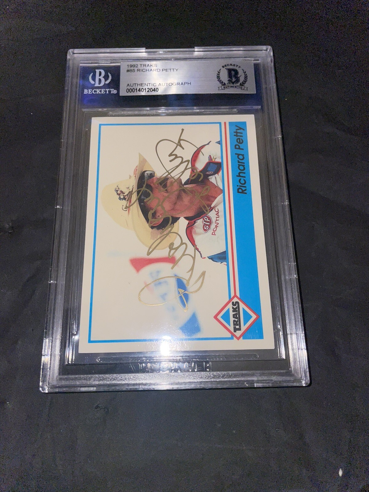 RICHARD PETTY SIGNED 1992 TRAKS #85 NASCAR BECKETT SLAB COLLECTIBLE MEMORABILIA