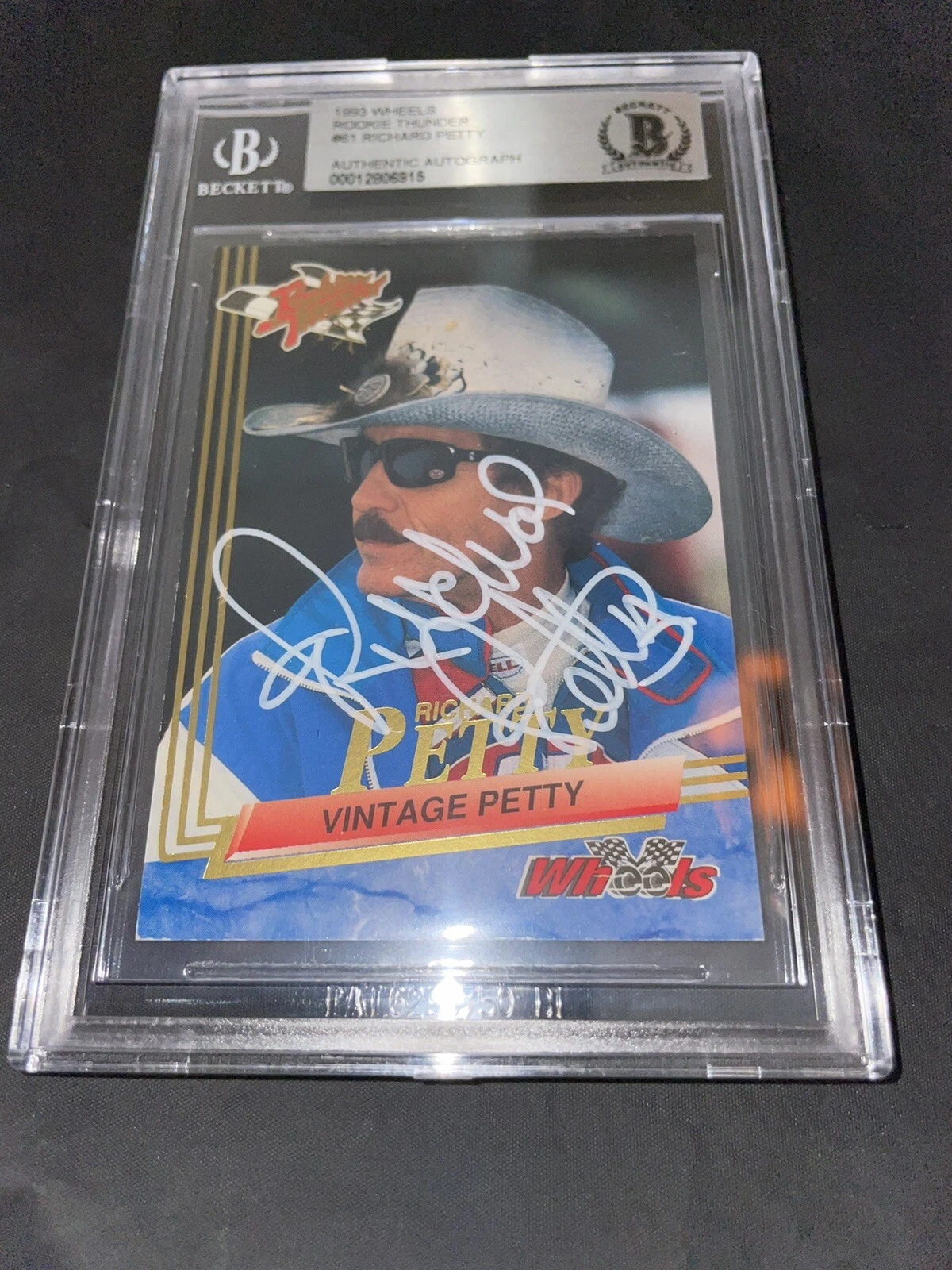 RICHARD PETTY SIGNED 1993 WHEELS ROOKIE THUNDER CARD BECKETT ENCAP #2 COLLECTIBLE MEMORABILIA