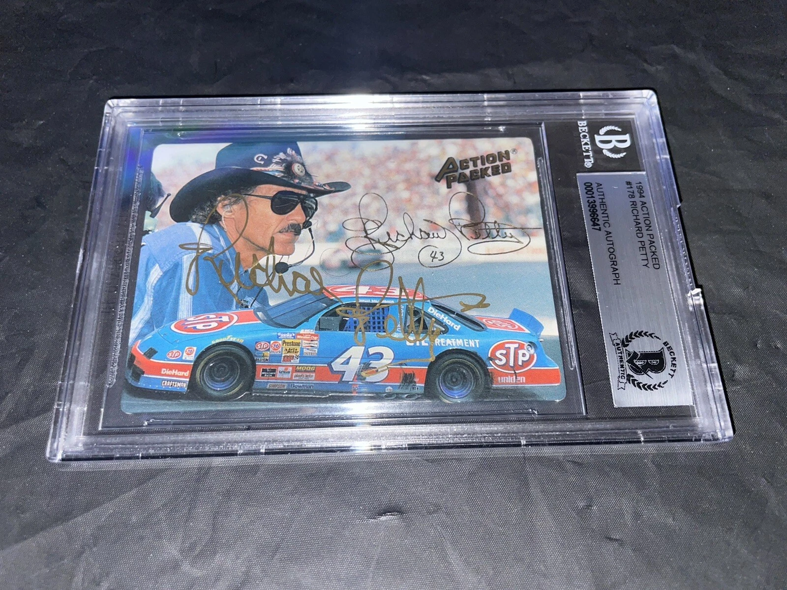 RICHARD PETTY SIGNED 1994 ACTION PACKED TRADING CARD BECKETT ENCAP COLLECTIBLE MEMORABILIA