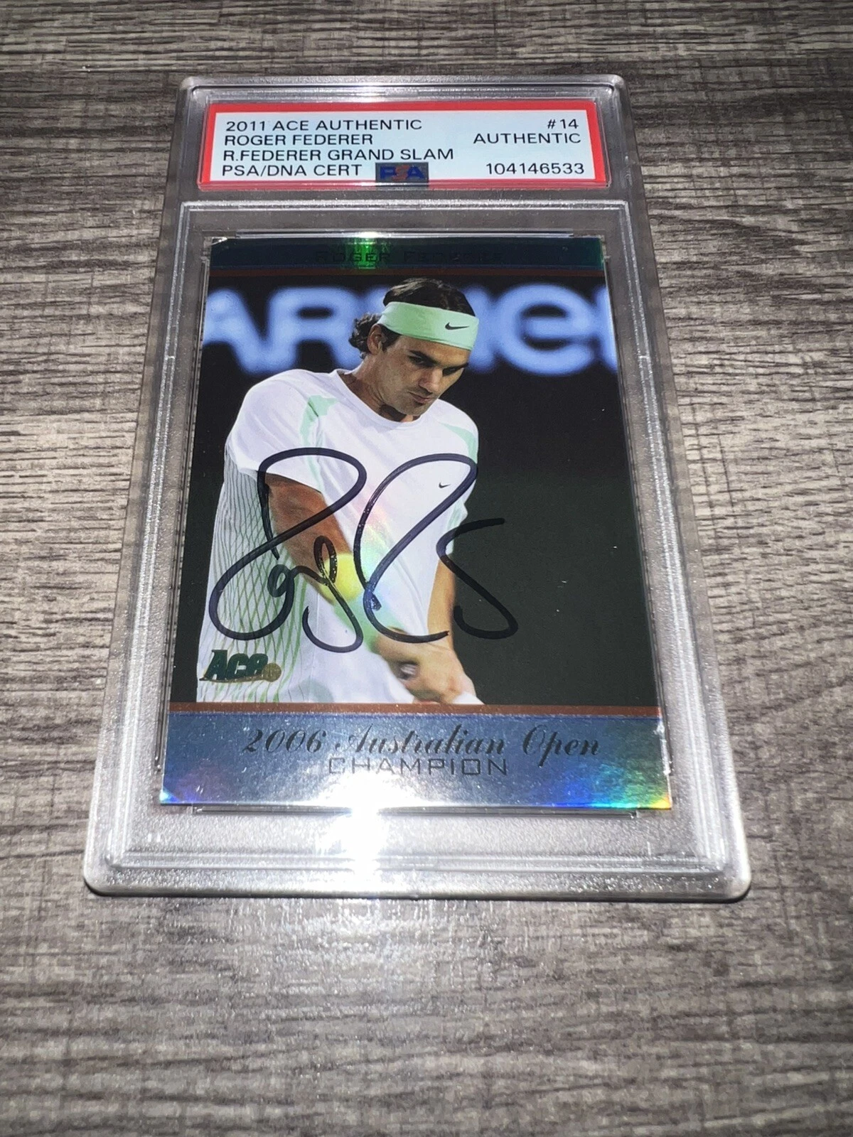 ROGER FEDERER SIGNED 2011 ACE AUTHENTIC TRADING CARD #14 GRAND SLAM GOAT PSA/DNA COLLECTIBLE MEMORABILIA