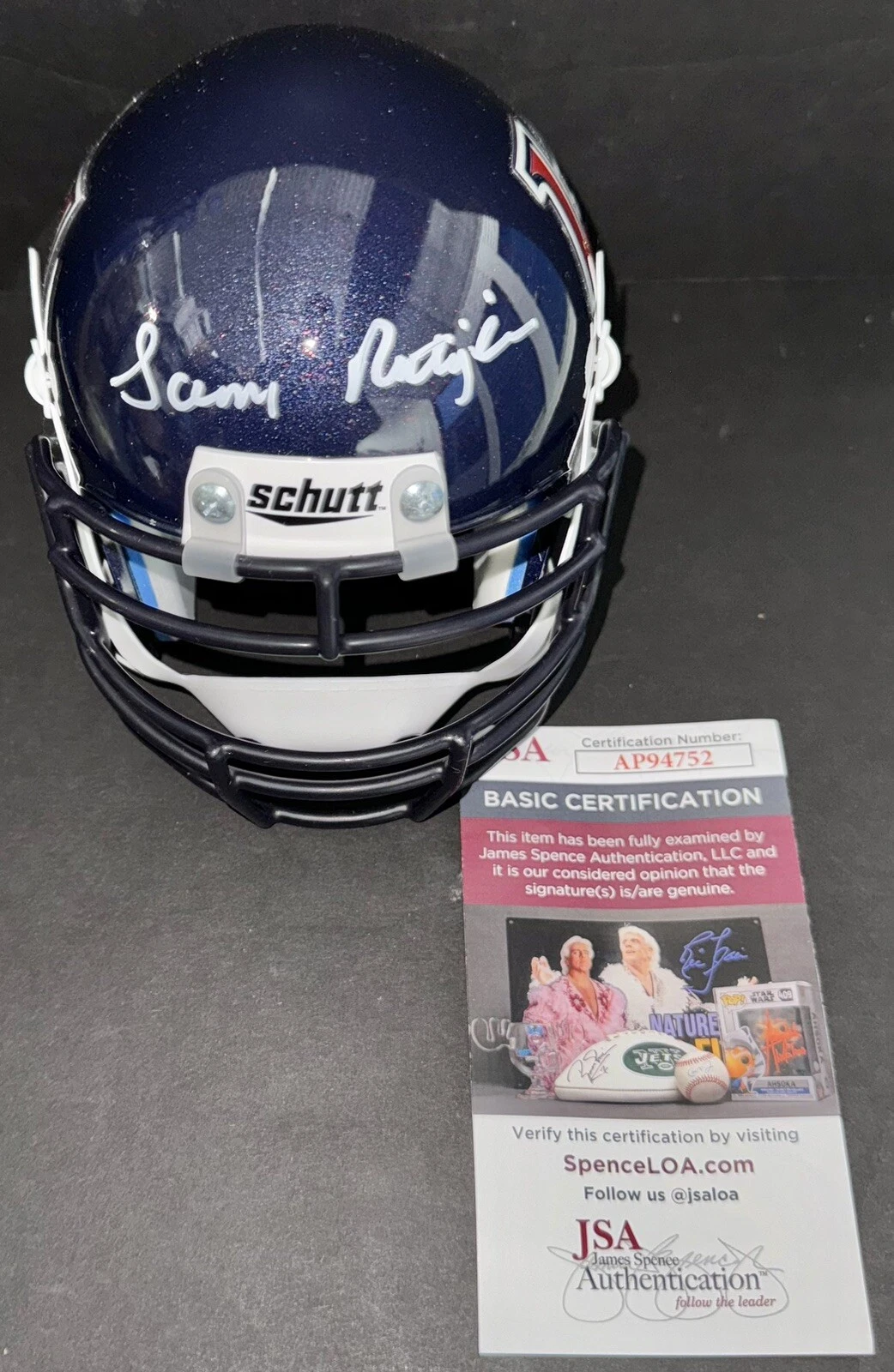 SAM RUTIGLIANO SIGNED AUTOGRAPHED LIBERTY FLAMES MINI HELMET JSA COA COLLECTIBLE MEMORABILIA