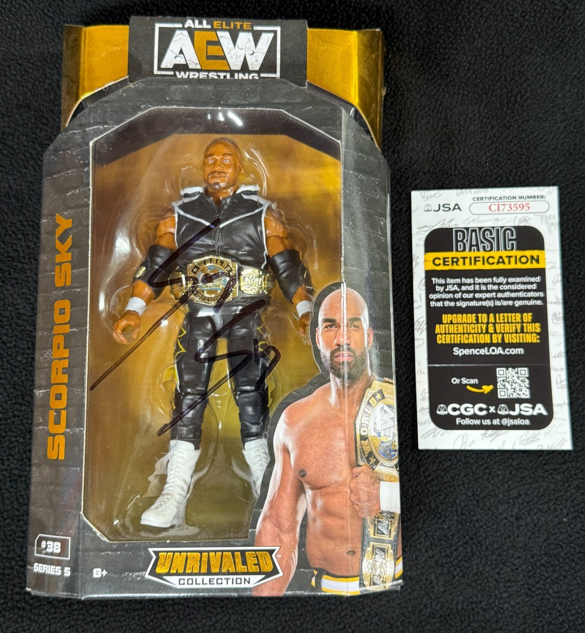 SCORPIO SKY SIGNED AEW SERIES 5 ACTION FIGURE #38 JSA COA WWE COLLECTIBLE MEMORABILIA