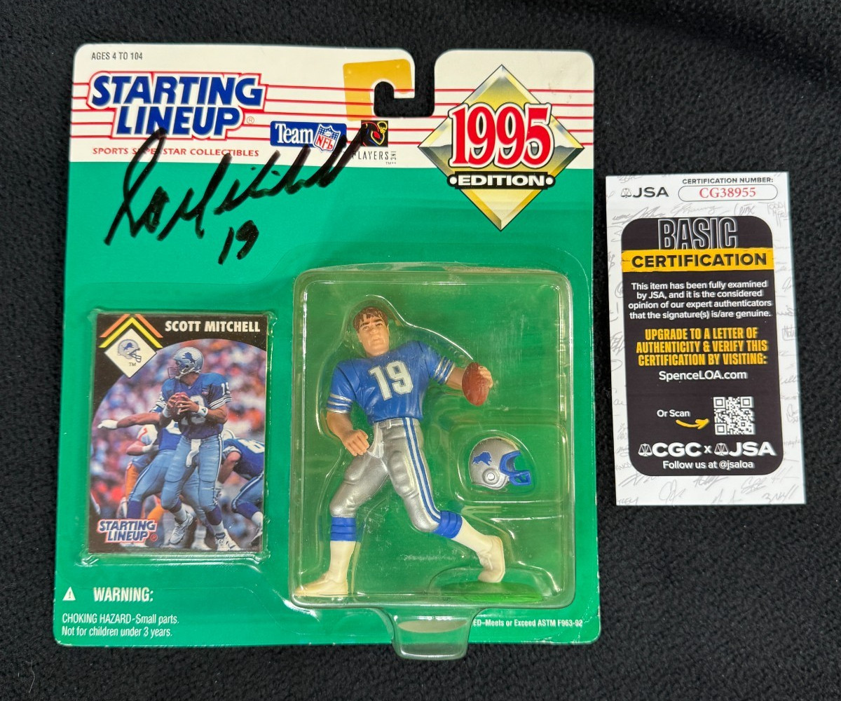 SCOTT MITCHELL SIGNED DETROIT LIONS 1995 STARTING LINEUP FIGURE JSA COA COLLECTIBLE MEMORABILIA
