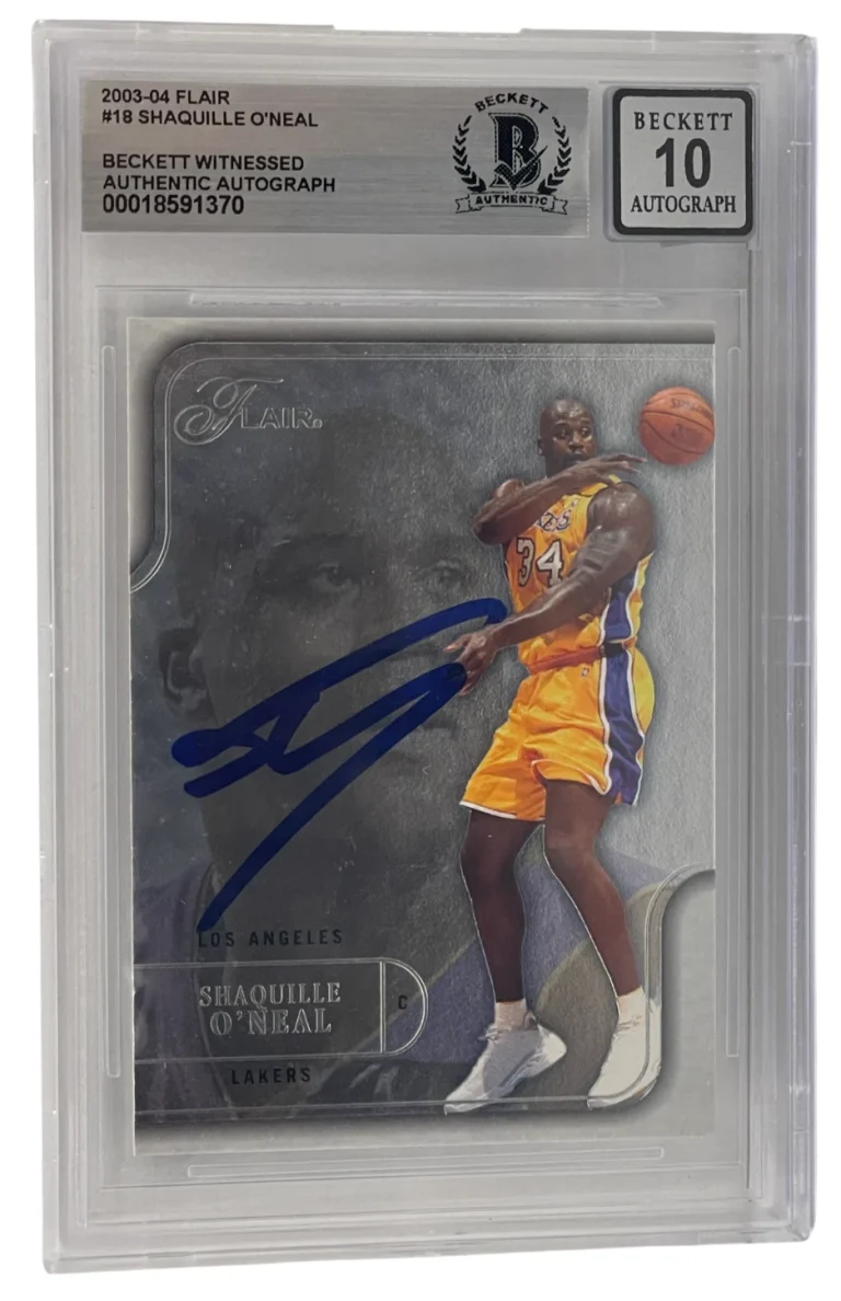SHAQUILLE O’NEAL SIGNED 2003-04 FLAIR #18 LAKERS BAS SLABBED AUTO GRADE 10 COLLECTIBLE MEMORABILIA