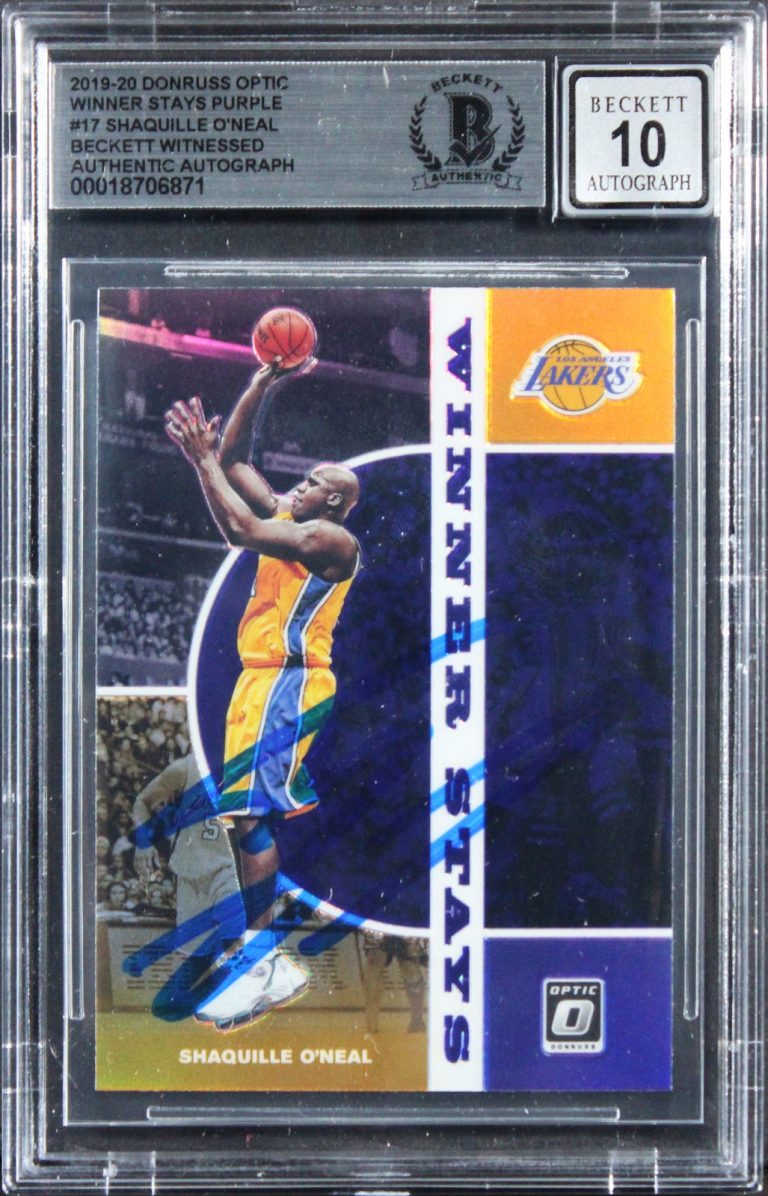 SHAQUILLE O’NEAL SIGNED 2019 DONRUSS OPTIC WS PURPLE #17 CARD AUTO 10! BAS SLAB COLLECTIBLE MEMORABILIA