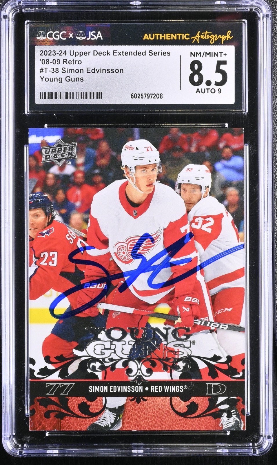 SIMON EDVINSSON SIGNED 2023-24 UPPER DECK YOUNG GUNS CARD T38 CGC 8.5 JSA 9 AUTO COLLECTIBLE MEMORABILIA
