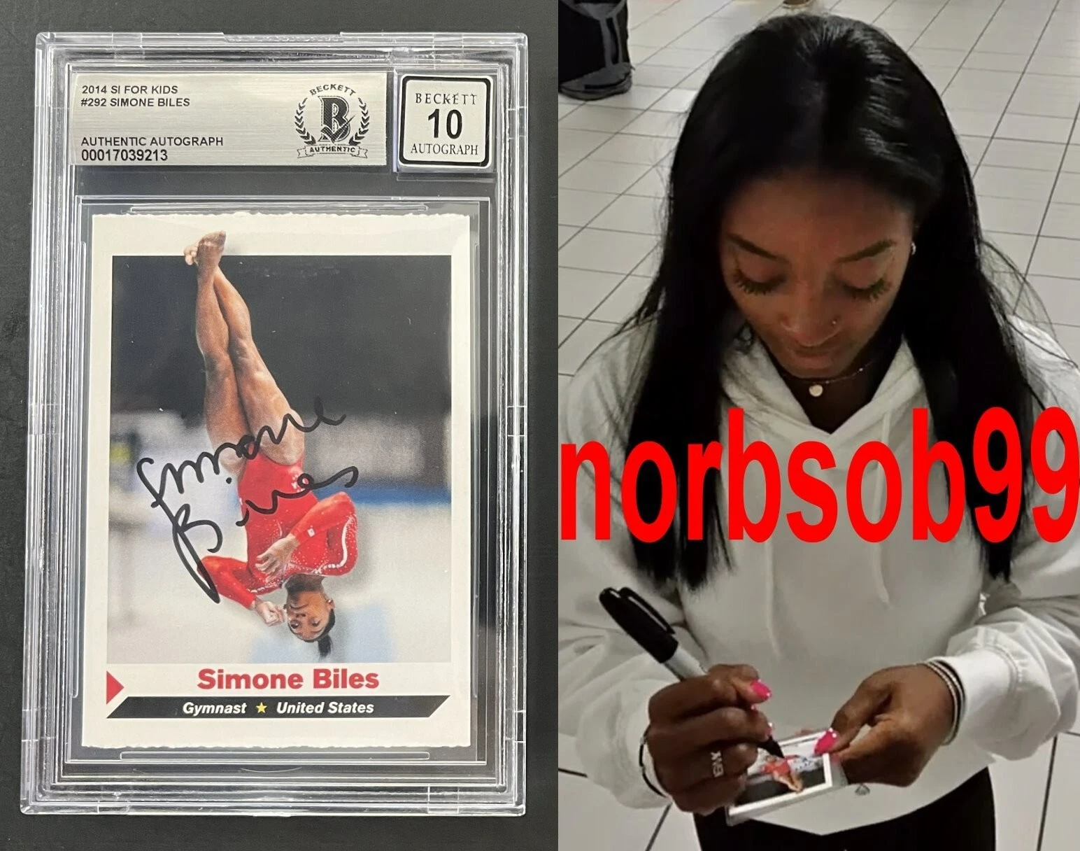 SIMONE BILES SIGNED 2014 SI FOR KIDS ROOKIE CARD W/EXACT VIDEO PROOF BECKETT 10 COLLECTIBLE MEMORABILIA