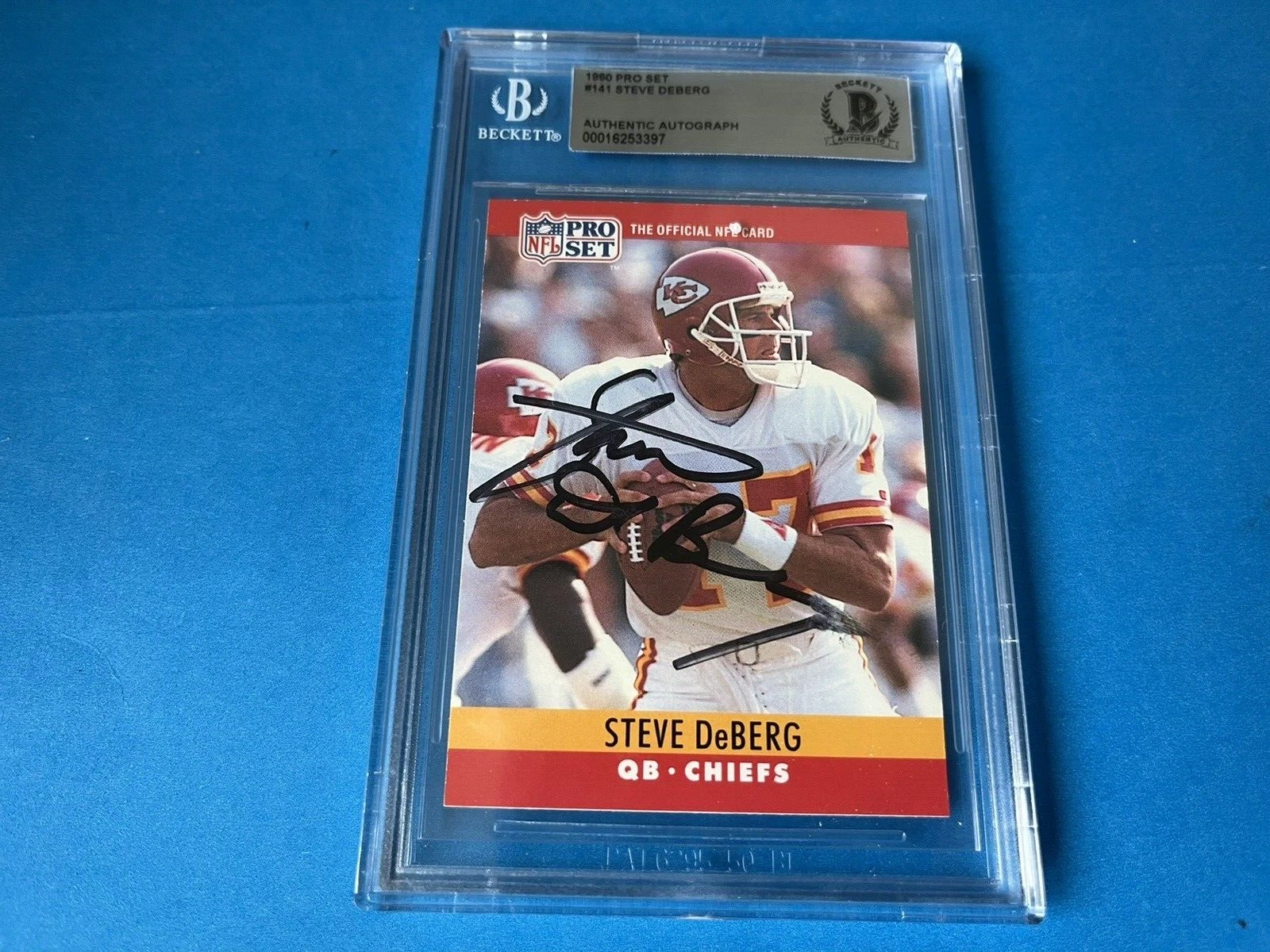 STEVE DEBERG CHIEFS 1990 PRO SET CARD SIGNED AUTO BECKETT BAS SLABBED COLLECTIBLE MEMORABILIA