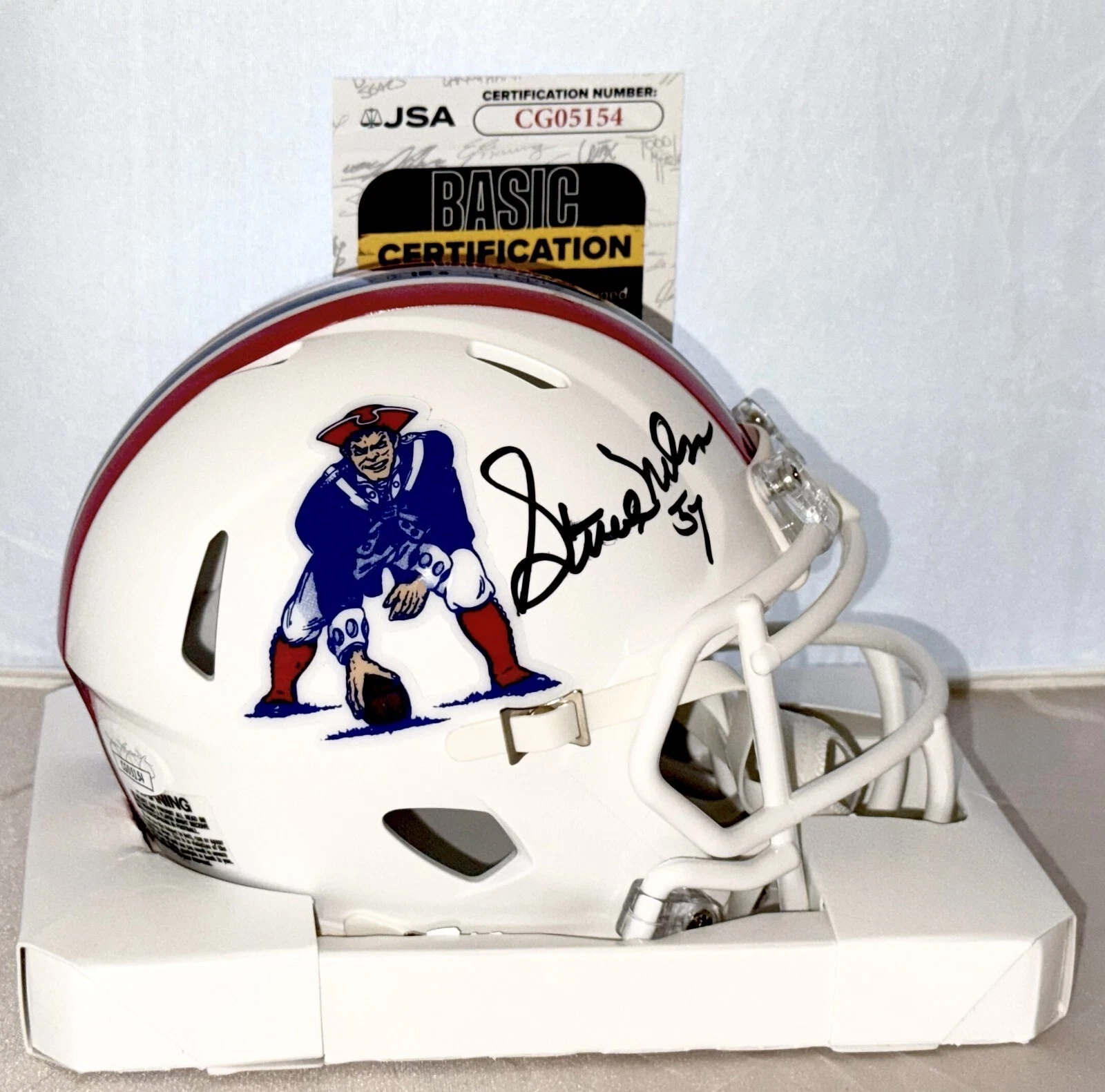 STEVE NELSON SIGNED NEW ENGLAND PATRIOTS THROWBACK MINI HELMET AUTOGRAPHED JSA COLLECTIBLE MEMORABILIA
