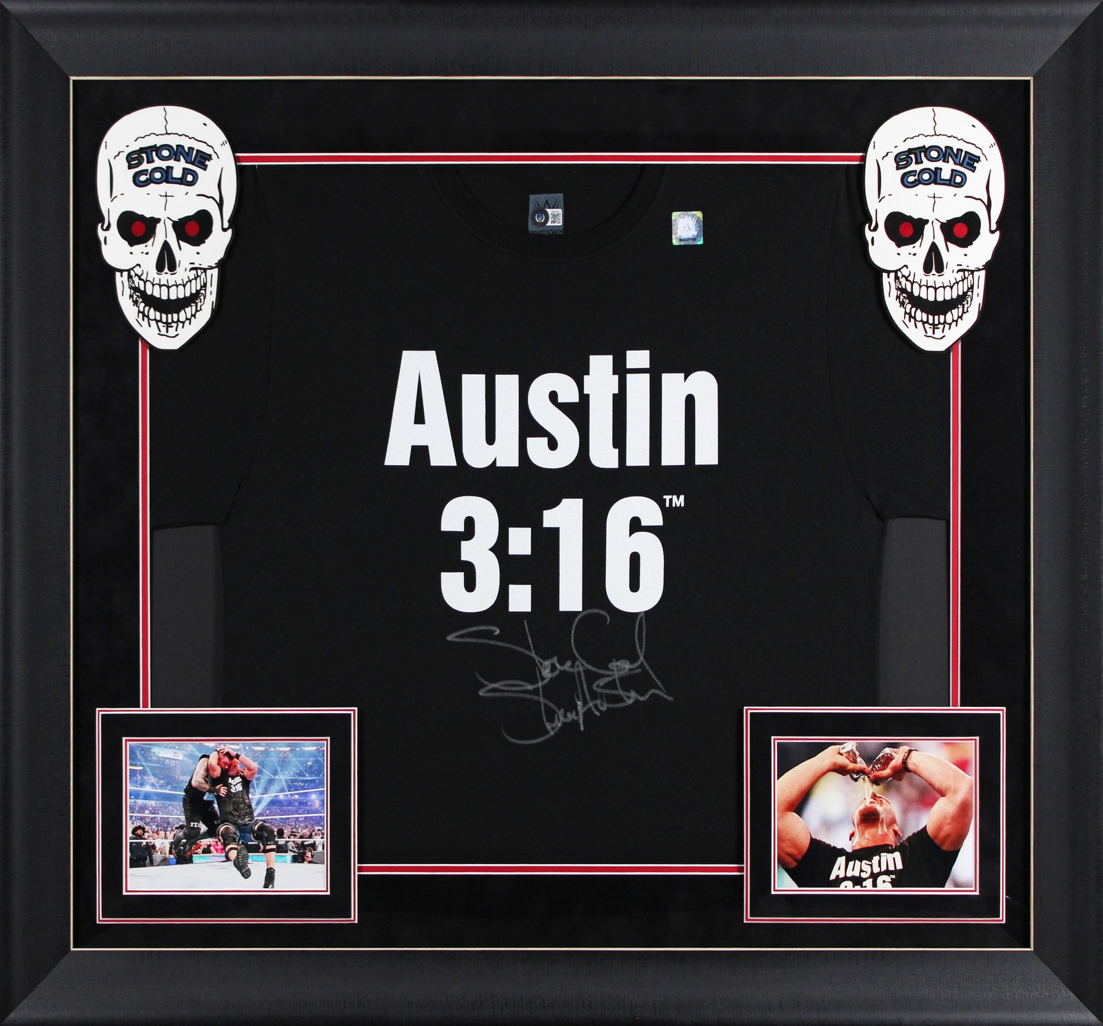STONE COLD STEVE AUSTIN SIGNED BLACK AUSTIN 3:16 T-SHIRT FRAMED DISPLAY BAS WIT COLLECTIBLE MEMORABILIA