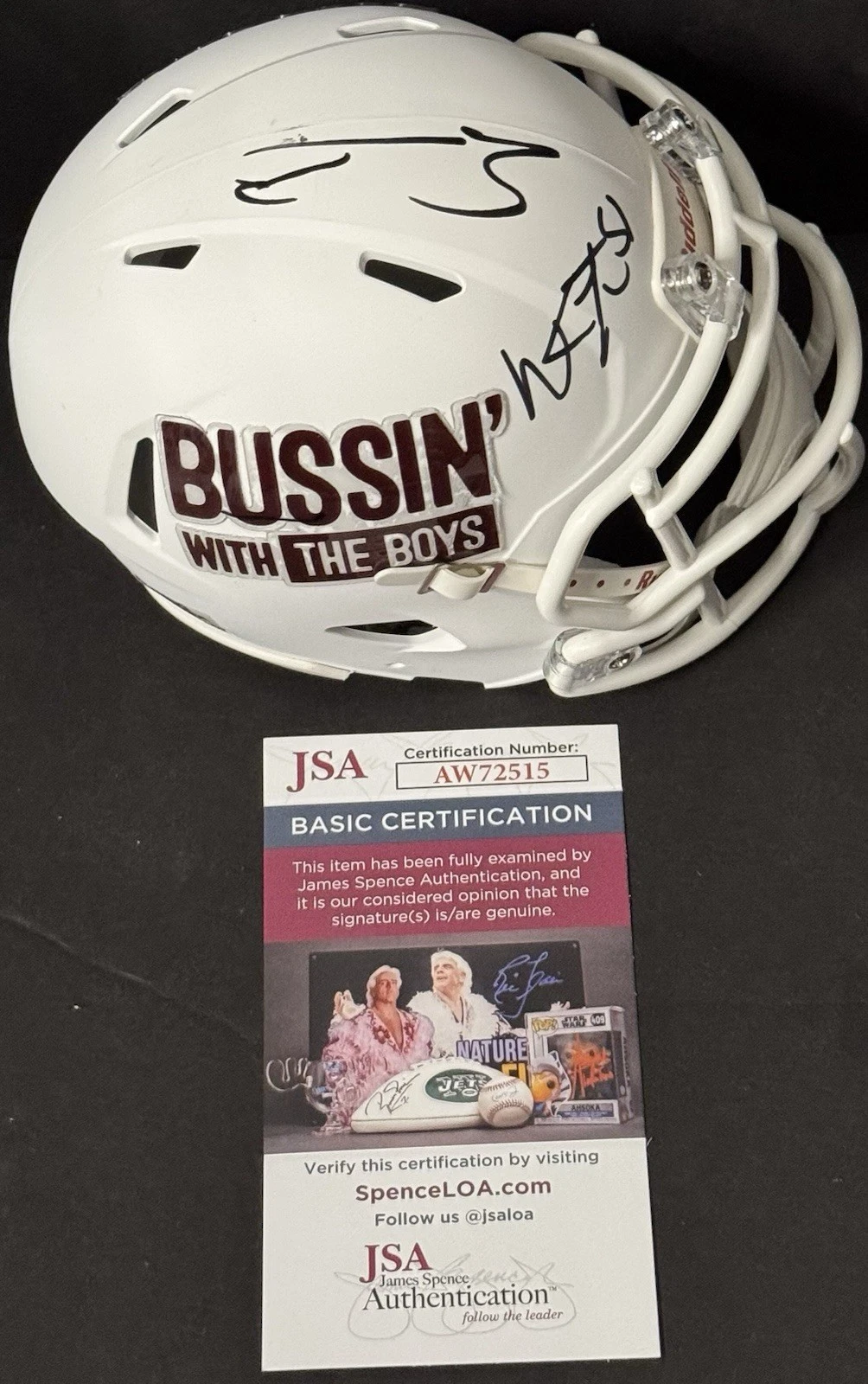 TAYLOR LEWAN WILL COMPTON SIGNED CUSTOM BUSSIN WITH THE BOYS MINI HELMET JSA COA COLLECTIBLE MEMORABILIA