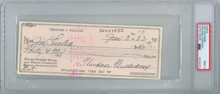 TED WILLIAMS SIGNED PERSONAL CHECK PSA DNA 84308373 RED SOX HOF (D) MINT 9 COLLECTIBLE MEMORABILIA