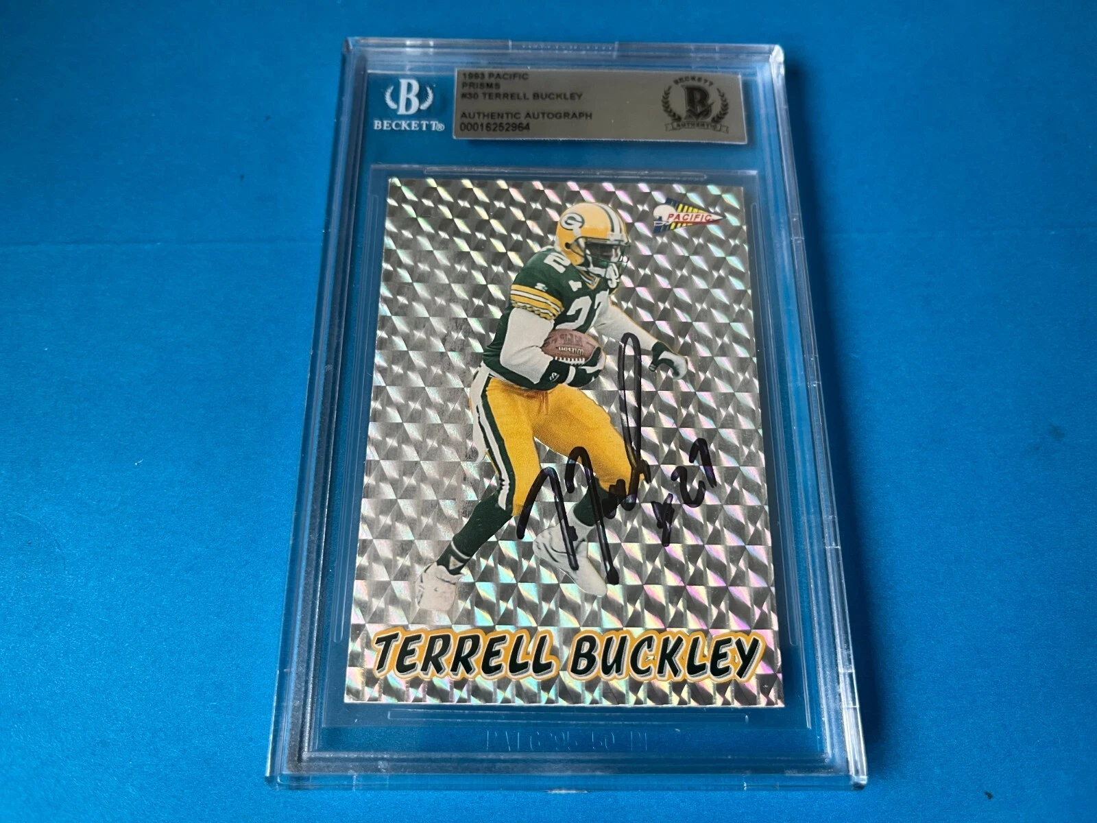 TERRELL BUCKLEY PACKERS 1993 PACIFIC PRISMS CARD SIGNED AUTO BECKETT BAS SLABBED COLLECTIBLE MEMORABILIA