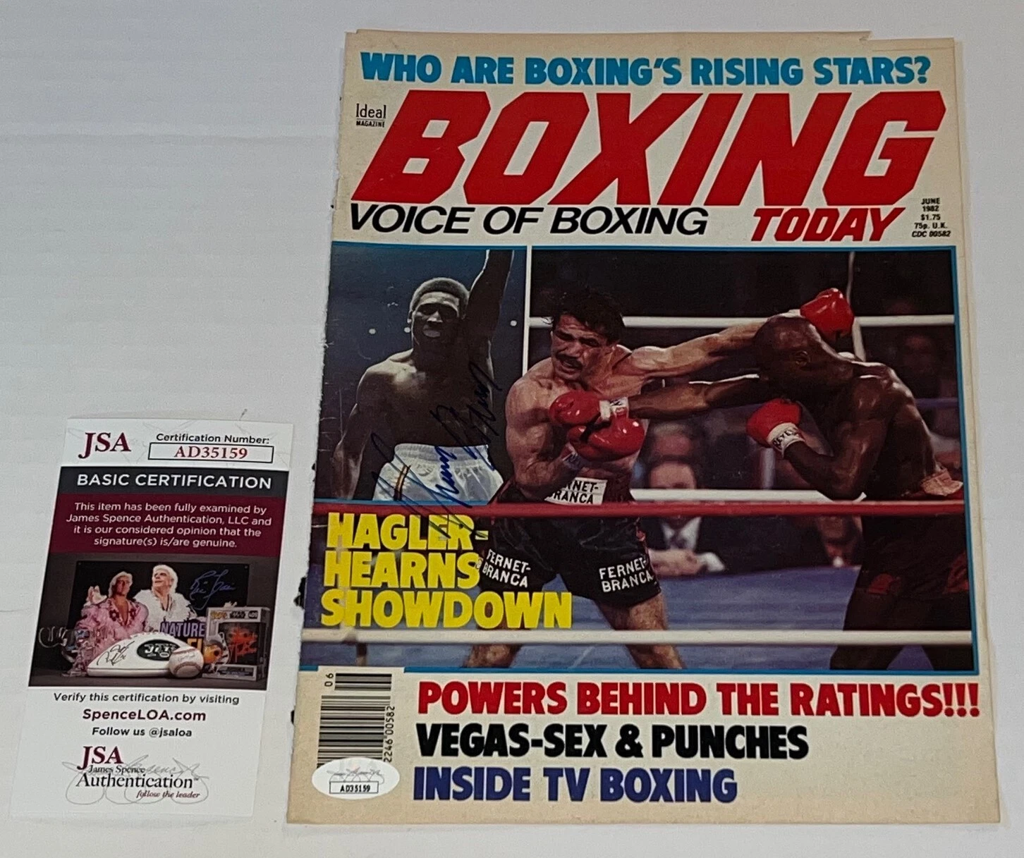 THOMAS HEARNS THE HITMAN SIGNED MAGAZINE PAGE BOXING CHAMP AUTOGRAPHED 6 JSA COLLECTIBLE MEMORABILIA
