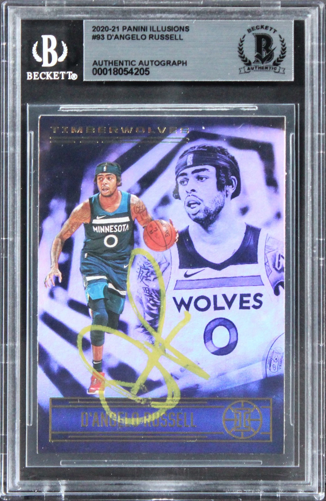 TIMBERWOLVES D’ANGELO RUSSELL SIGNED 2020 PANINI ILLUSIONS #93 CARD BAS SLAB COLLECTIBLE MEMORABILIA