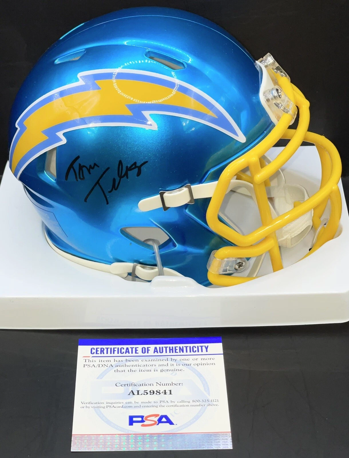 TOM TELESCO SIGNED AUTOGRAPHED LOS ANGELES CHARGERS FLASH MINI HELMET PSA/DNA COLLECTIBLE MEMORABILIA