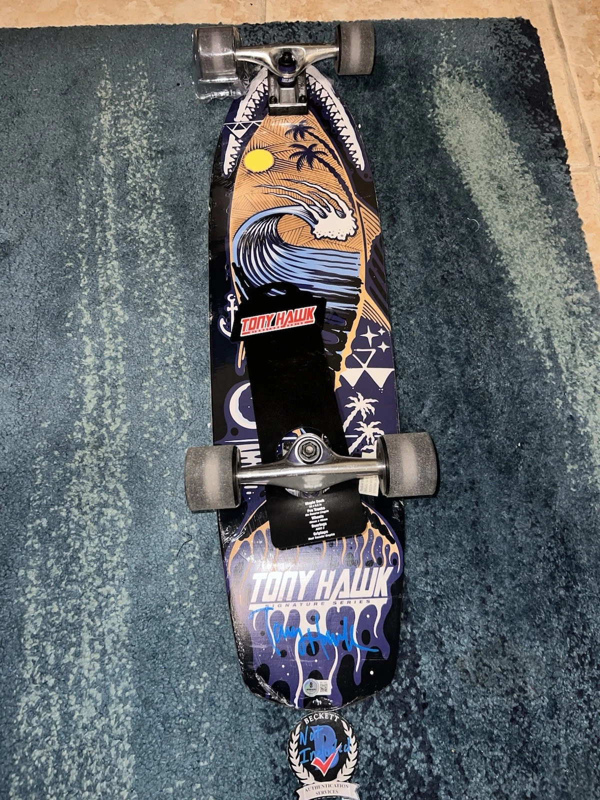 TONY HAWK SIGNED OFFICIAL SIGNATURE SERIES SKATEBOARD LONG BOARD GOAT BECKETT COLLECTIBLE MEMORABILIA