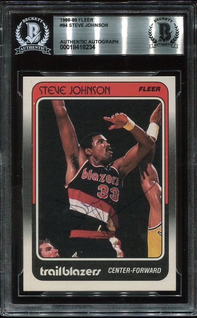 TRAILBLAZERS STEVE JOHNSON SIGNED AUTOGRAPHED 1988 FLEER CARD BECKETT (BAS) RARE COLLECTIBLE MEMORABILIA