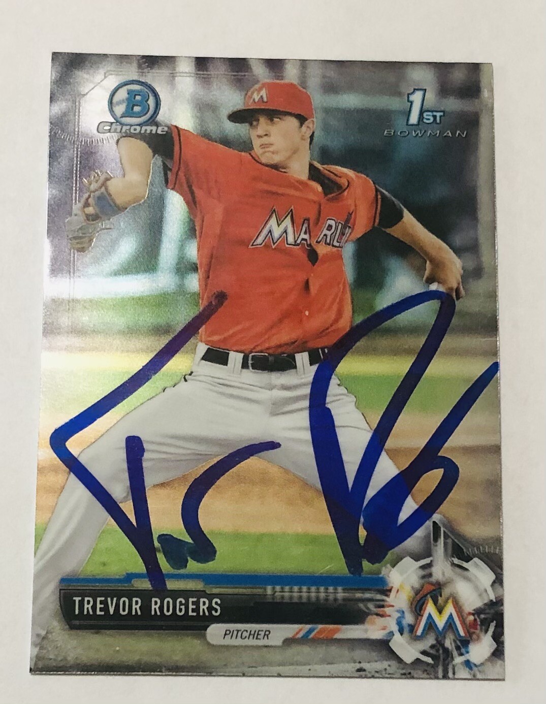 TREVOR ROGERS SIGNED 2017 BOWMAN CHROME DRAFT PROSPECT ROOKIE CARD MARLINS AUTO COLLECTIBLE MEMORABILIA