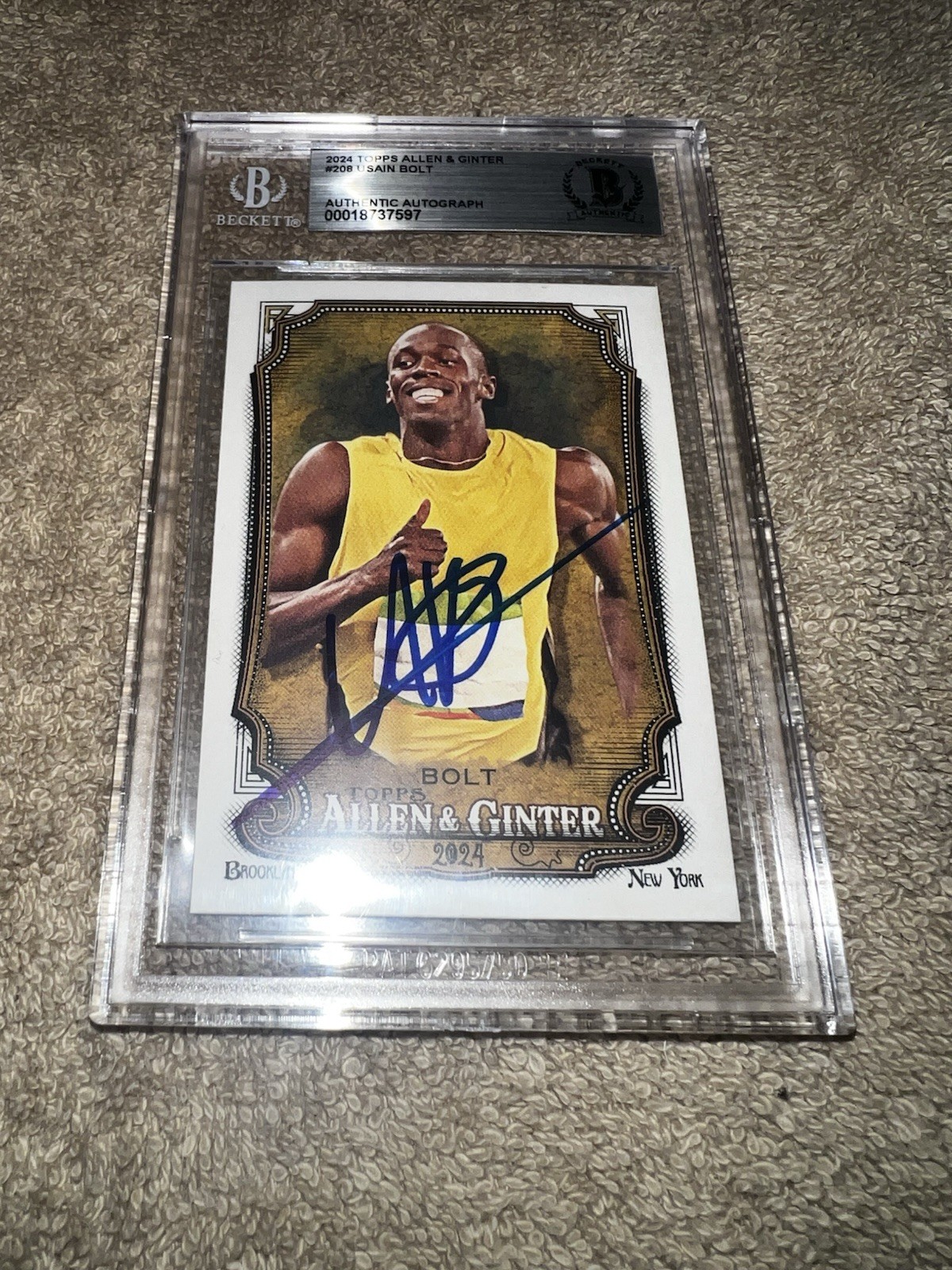 USAIN BOLT SIGNED 2024 ALLEN & GINTER TRADING CARD #208 LEGEND BECKETT #4 COLLECTIBLE MEMORABILIA