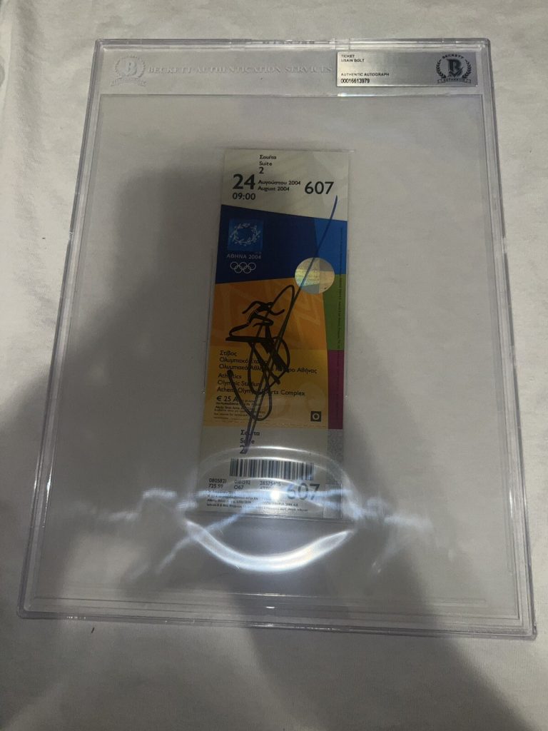 USAIN BOLT SIGNED OFFICIAL ATHENS 200 OLYMPIC TICKET GOLD 1ST OLYMPICS BECKETT COLLECTIBLE MEMORABILIA