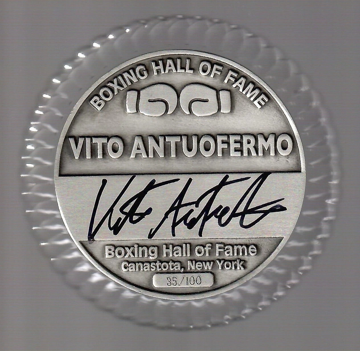 VITO ANTUOFERMO HAND SIGNED BOXING HOF PAPERWEIGHT+COA VERY RARE 35/100 COLLECTIBLE MEMORABILIA
