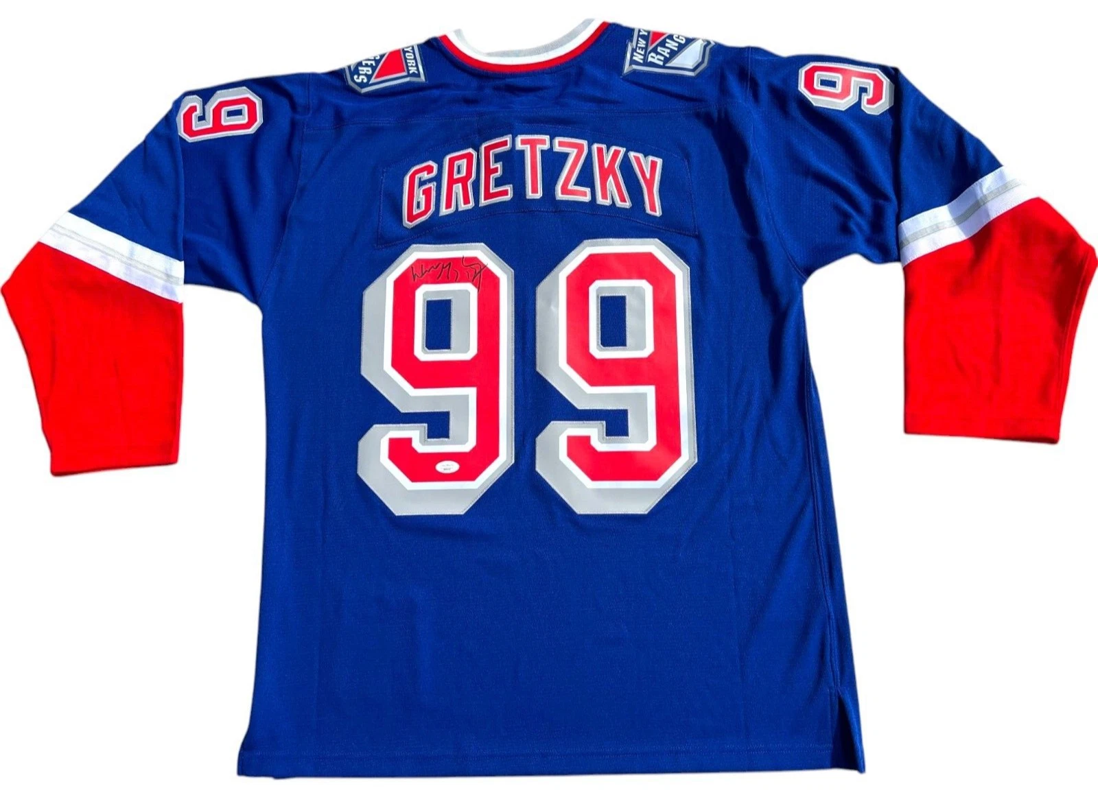WAYNE GRETZKY SIGNED 1996 NEW YORK RANGERS HOCKEY JERSEY MITCHELL BLUE LINE JSA COLLECTIBLE MEMORABILIA