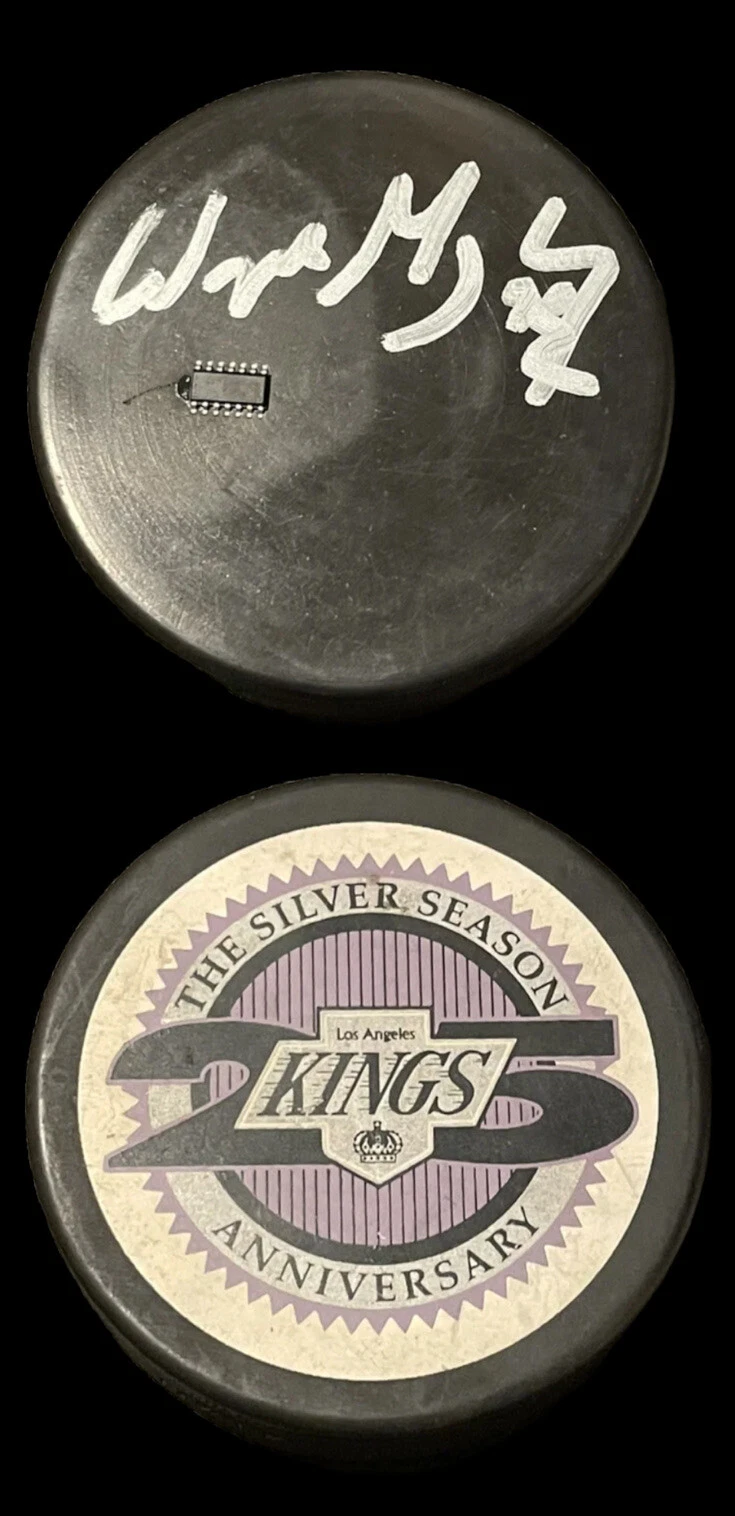 WAYNE GRETZKY SIGNED AUTO + GAME USED LA KINGS 25TH ANNIVERSARY OFFICIAL PUCK COLLECTIBLE MEMORABILIA