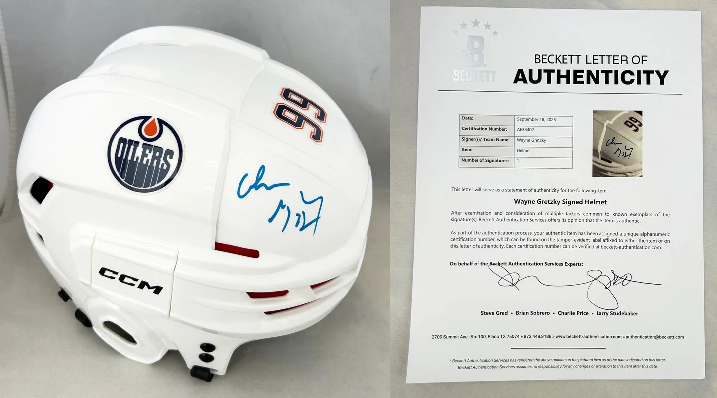 WAYNE GRETZKY SIGNED FULL SIZE HELMET EDMONTON OILERS BECKETT BAS COA COLLECTIBLE MEMORABILIA